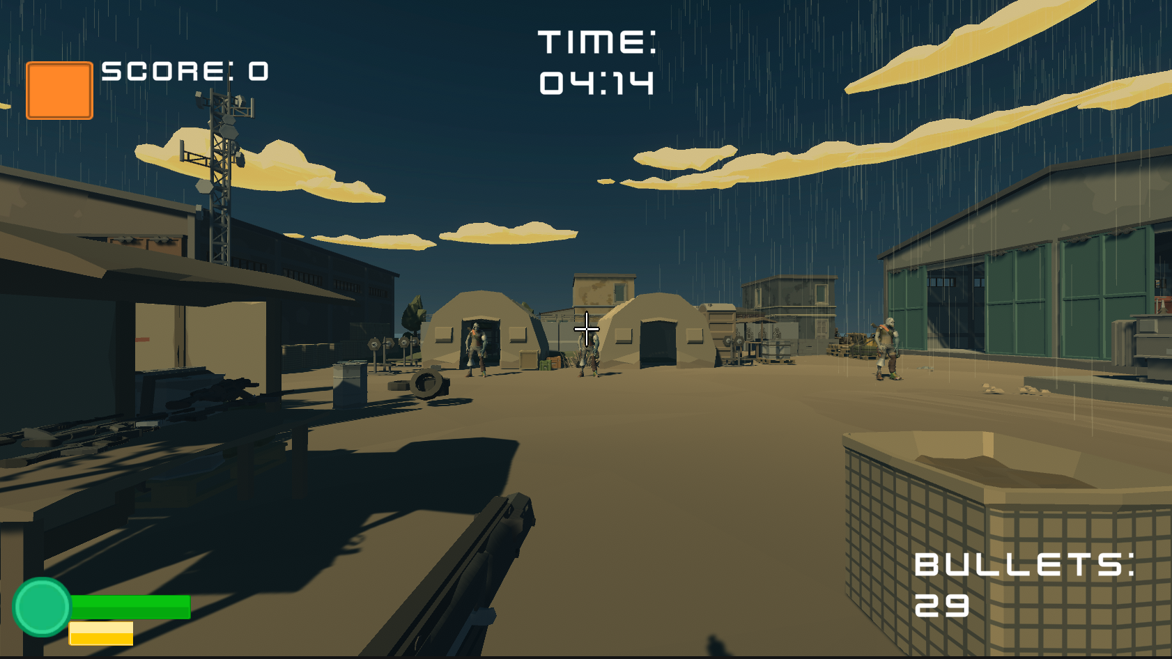 You are a bald soldier, completely alone in a military training arena overrun by monsters, and your mission is to clear it out as quickly as possible before time runs out and the place becomes fully infested.